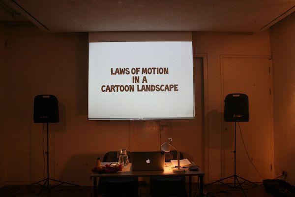 Contemporary artist Andy Holden uses the laws of physics as they appear in cartoons to help us devise a possible way of understanding the landscape “after the end of art history… a landscape where it seems like anything might be possible, but not everything is, there are rules that begin to emerge as we make observations.” This performance lecture formed the basis of his exhibition with the same name that Holden went on to develop as part of his Stanley Picker Fellowship in 2012/2013