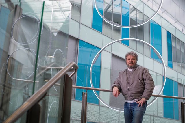 This is especially true of the piece he has created for Southmead Hospital Bristol which was installed in May 2014. Rehberger's Binary Clock Sculpture is a neon light sculpture based around the principle of the binary clock. The sculpture is made up of three parts, one in each of the three atria of the new hospital. Each of the three sculptures has a different composition with each one functioning independently as a clock.