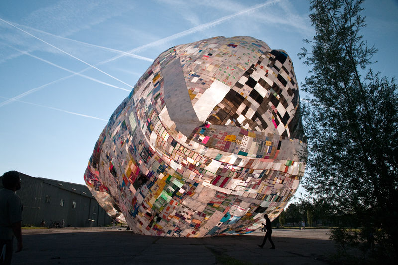 New sections of the balloon (or museum) are added each time it travels the world, thus changing techniques, drawings and shapes, and growing in size every time it sets sail in the air. Museo aero solar stands for a different conception of space and energy, both anomalous and forceful at the same time. The core of the Museo resides in the inventiveness of local inhabitants, not in its image: among collective action and art, do-it-together technology and experiment and is, as the artist has staged “a voyage back/forward in time”.