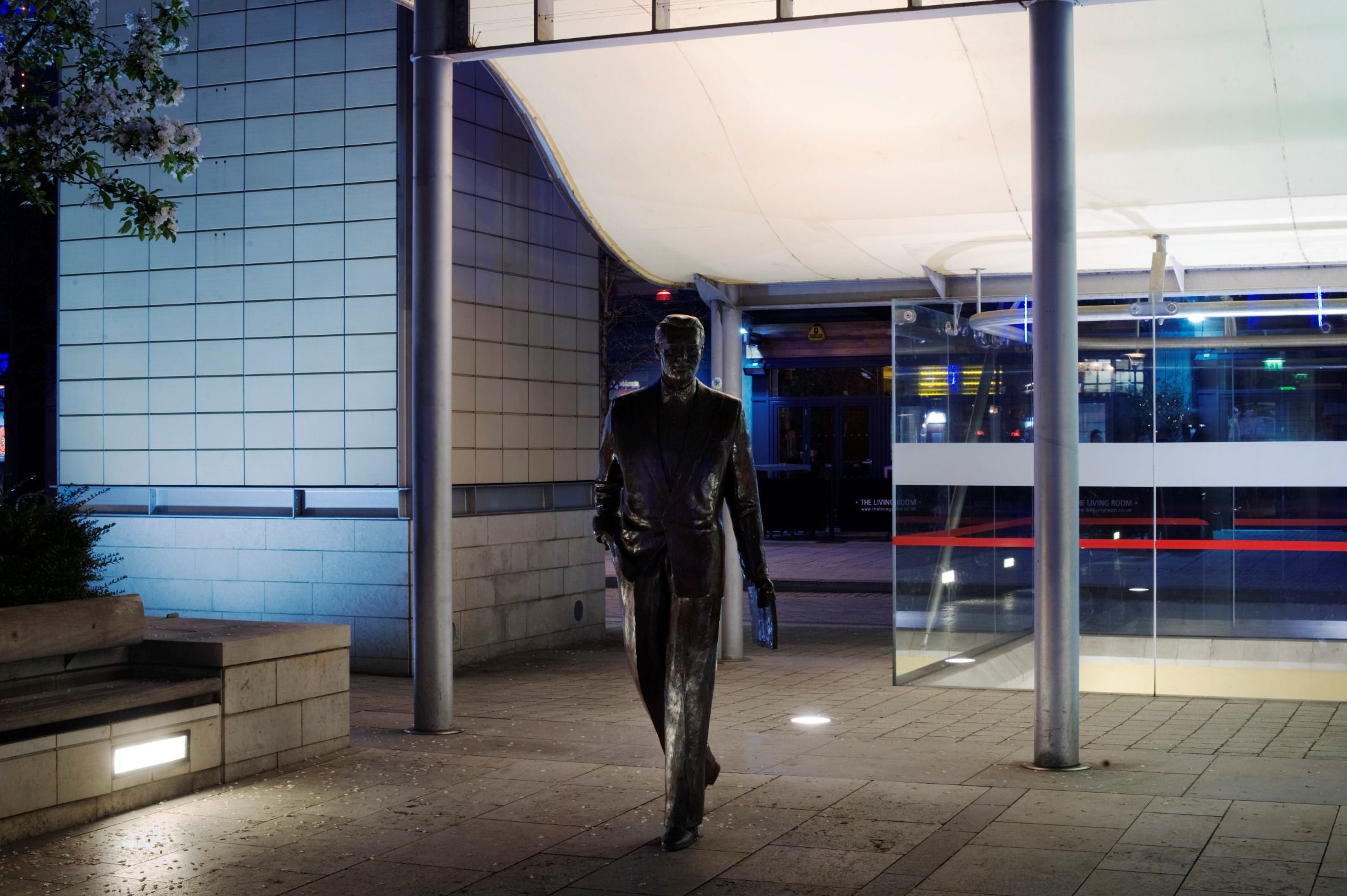 This life-size bronze of Hollywood legend Cary Grant commemorates the achievements of the actor who was born and brought up in Bristol. Cary, who was a regular visitor to the city until his death in 1986, enjoyed one of the most successful and long lasting acting careers. He is arguably the greatest British born film actor, being voted the second greatest film actor of all time.