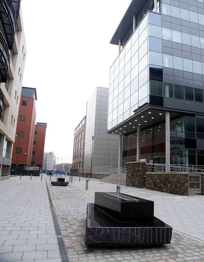 John Aiken's commission for the Temple Quay area of Bristol is an extensive landscape based work, located within development of offices and HQ Buildings adjacent to Temple Meads Station and the Floating Harbour. The project, which was commissioned as part of SWRDA's commitment to public art was funded by the Development Agency itself alongside contributions from Castlemore Securities, the developers for the overall site.