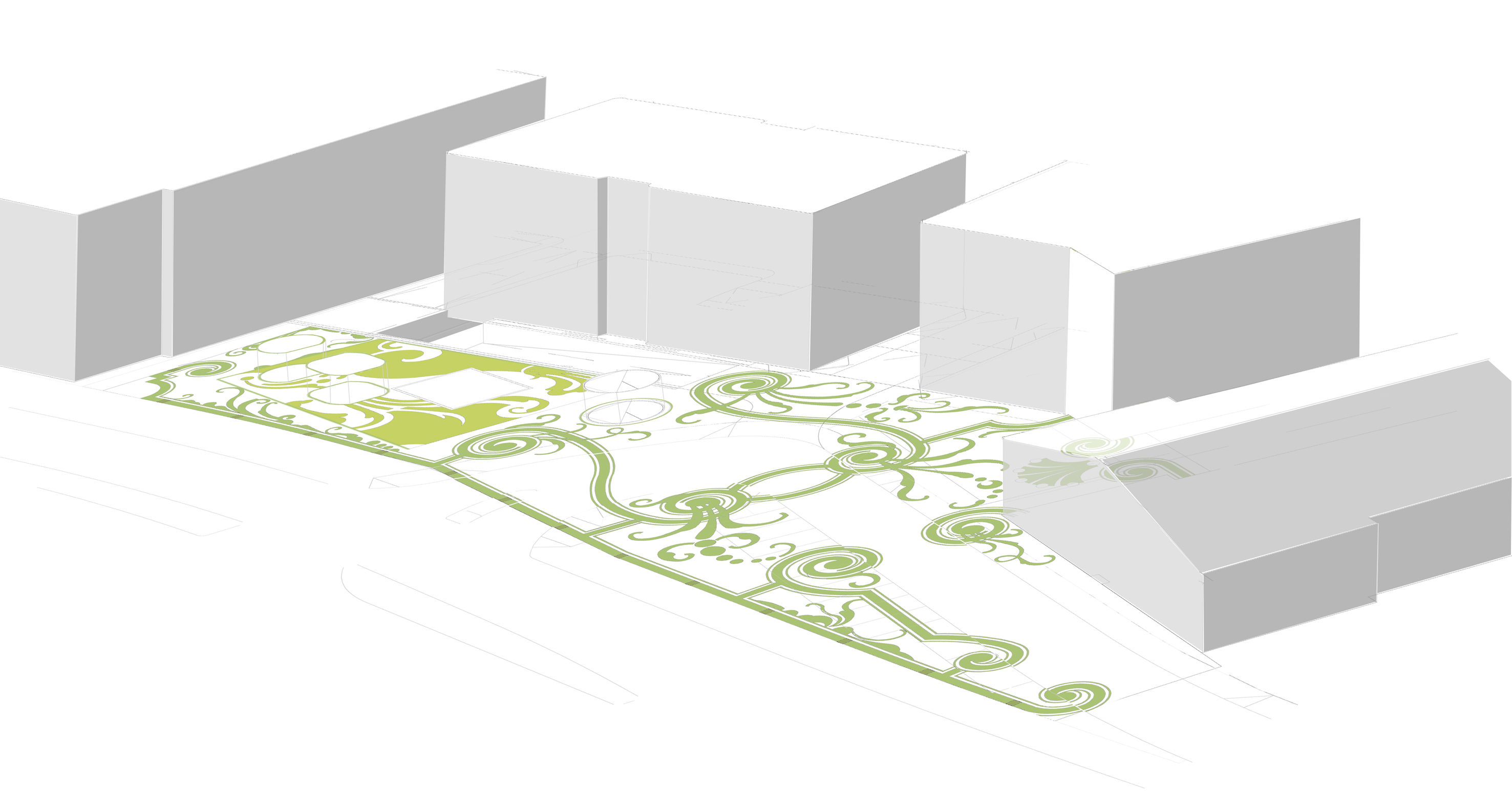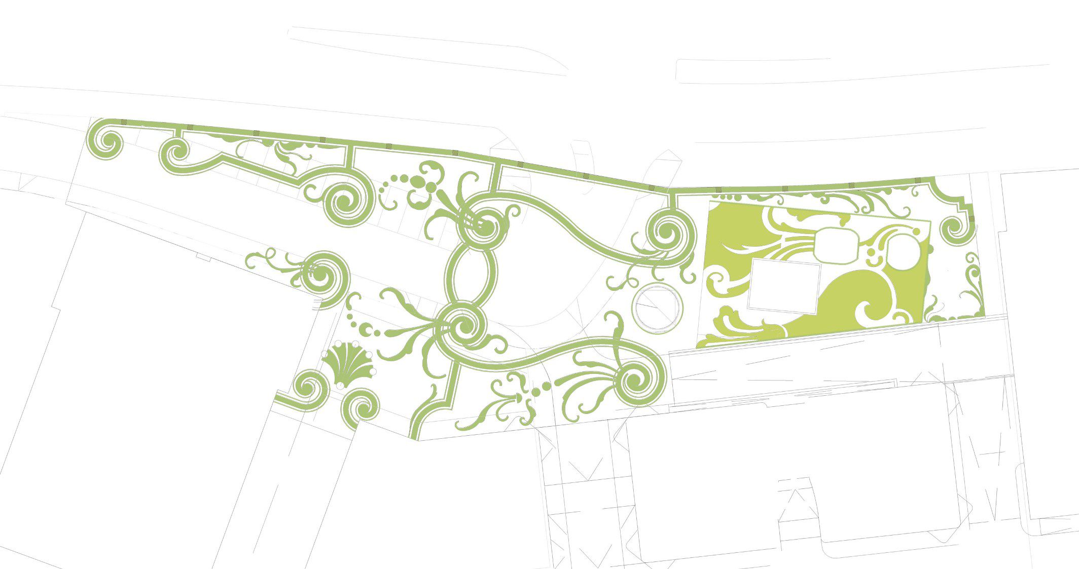 The design concept proposed a way to unify these spaces with the creation of a parterre carrying across the different areas, cutting through the road, the pavement, etc. Parterres were used in XVIIth century gardens as an aestheticization and a demonstration of the control of man over nature, working as a presentation of the mansion in the background. Contrary to the traditional box hedge parterre, the work at Harbourside is made of cuts in the ground surfaces to allow the urban vegetation to thrive in this controlled pattern, unifying all these left over spaces and bringing back some of the ruderal plants.