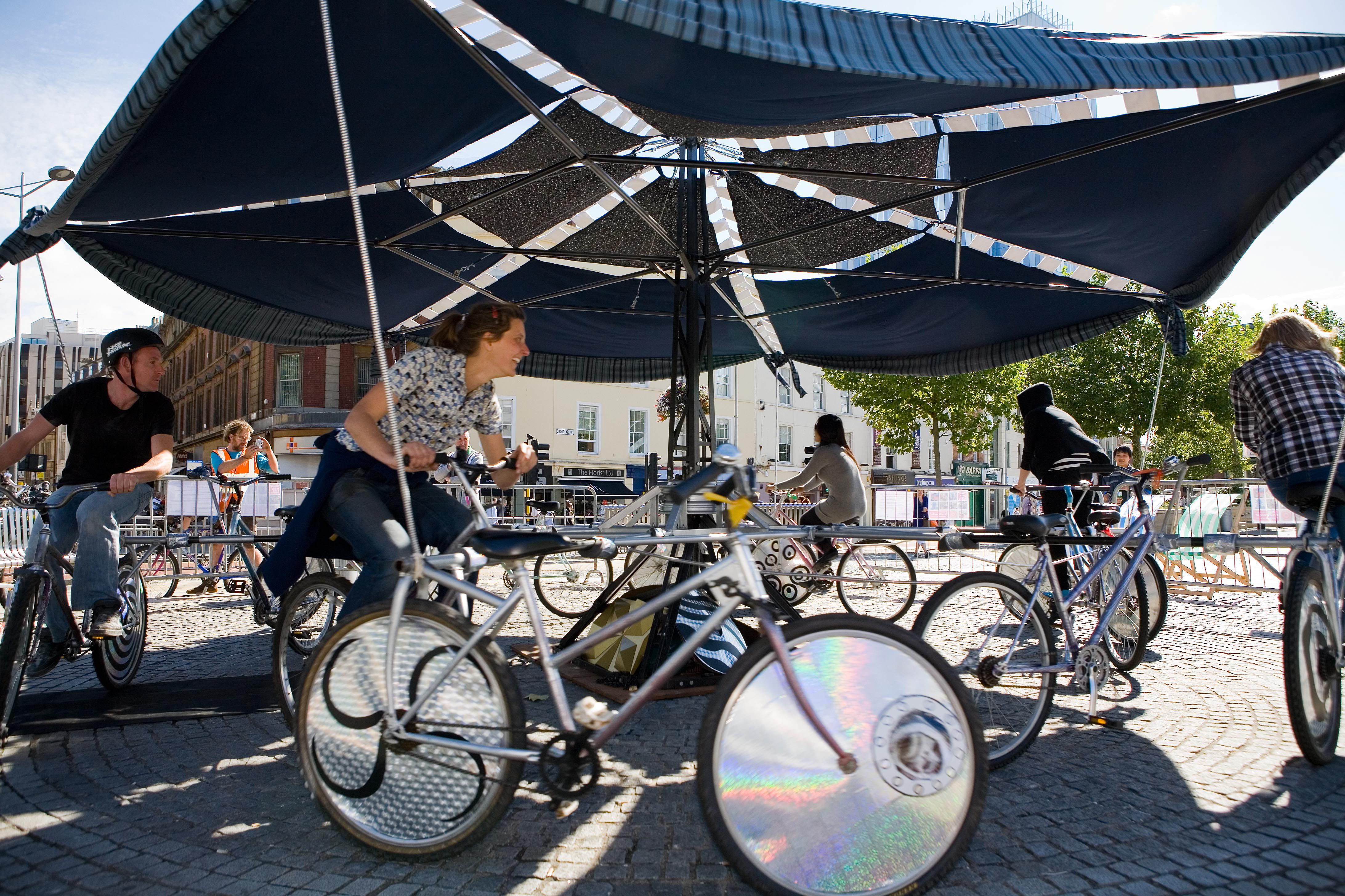 The general public were invited to ride the carousel and in doing so to generate sufficient power to run an integral sound system, playing music based upon the works thematic (bicycles and the space race).