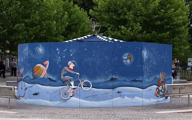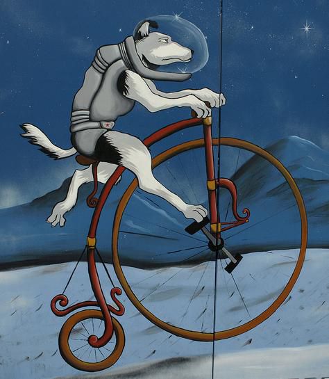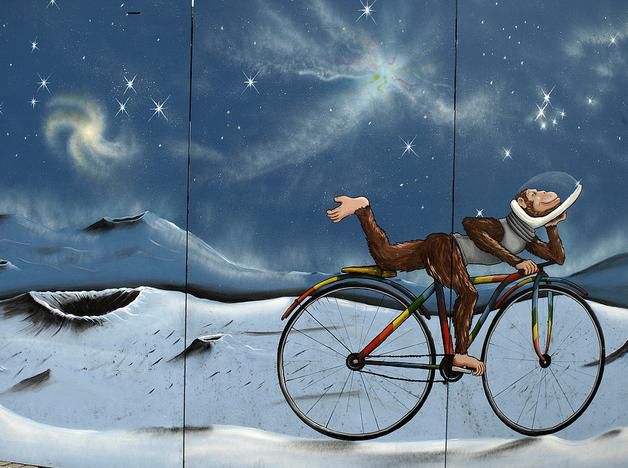 The work was decorated in the theme 'A bike ride to the moon', featuring the true pioneers of the space race; monkeys and dogs, where they are imagined riding bicycles on the moons surface.