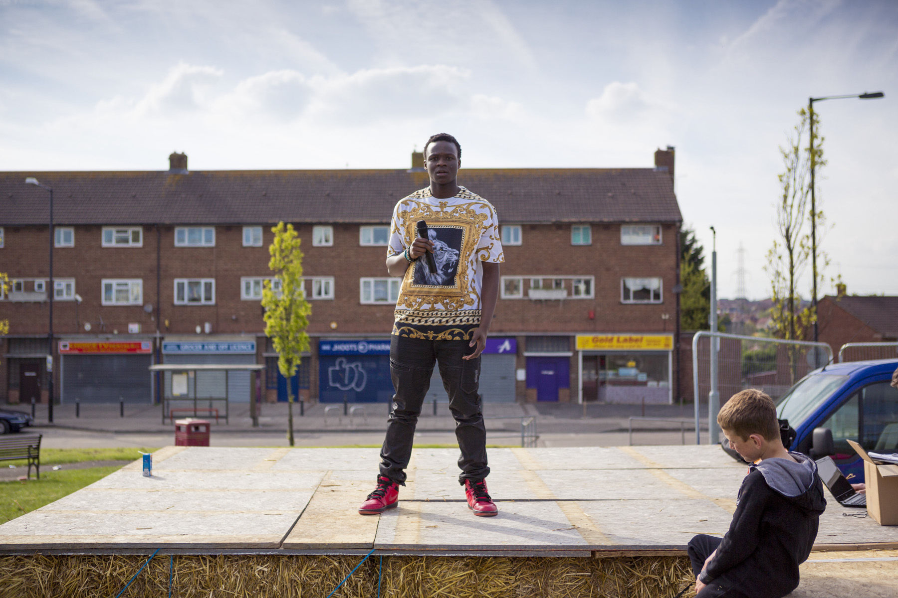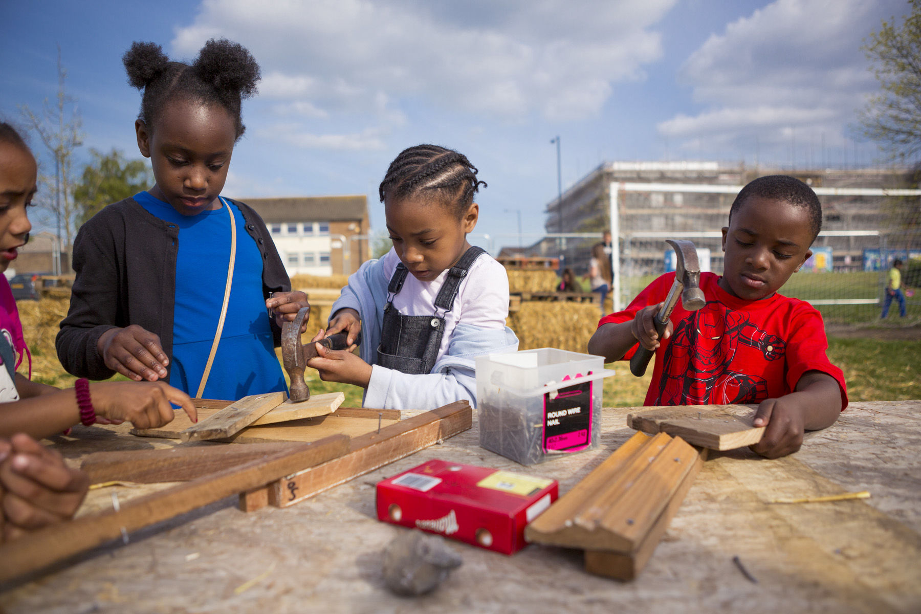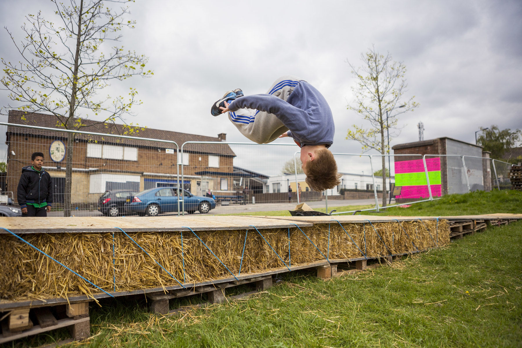 The starting point for 'Our Dream Today, Your Dream Tomorrow' was eleven workshops with young people developed in association with Learning Partnership West who provided an official ASDAN accreditation to participants. A simple ramp and stage was constructed from straw bales, timber and rope located along the edge of the grass football pitch. The structure was built by the project participants, along with artists, architects, designers, UWE architecture students and a structural engineers occupying a cordoned off green space at the heart of the Gainsborough Square construction site. The placement of the project allowed the public to encounter it within the unfolding landscape construction works, raising awareness in the activity and the Council’s work in the area.