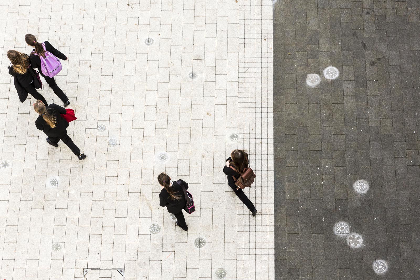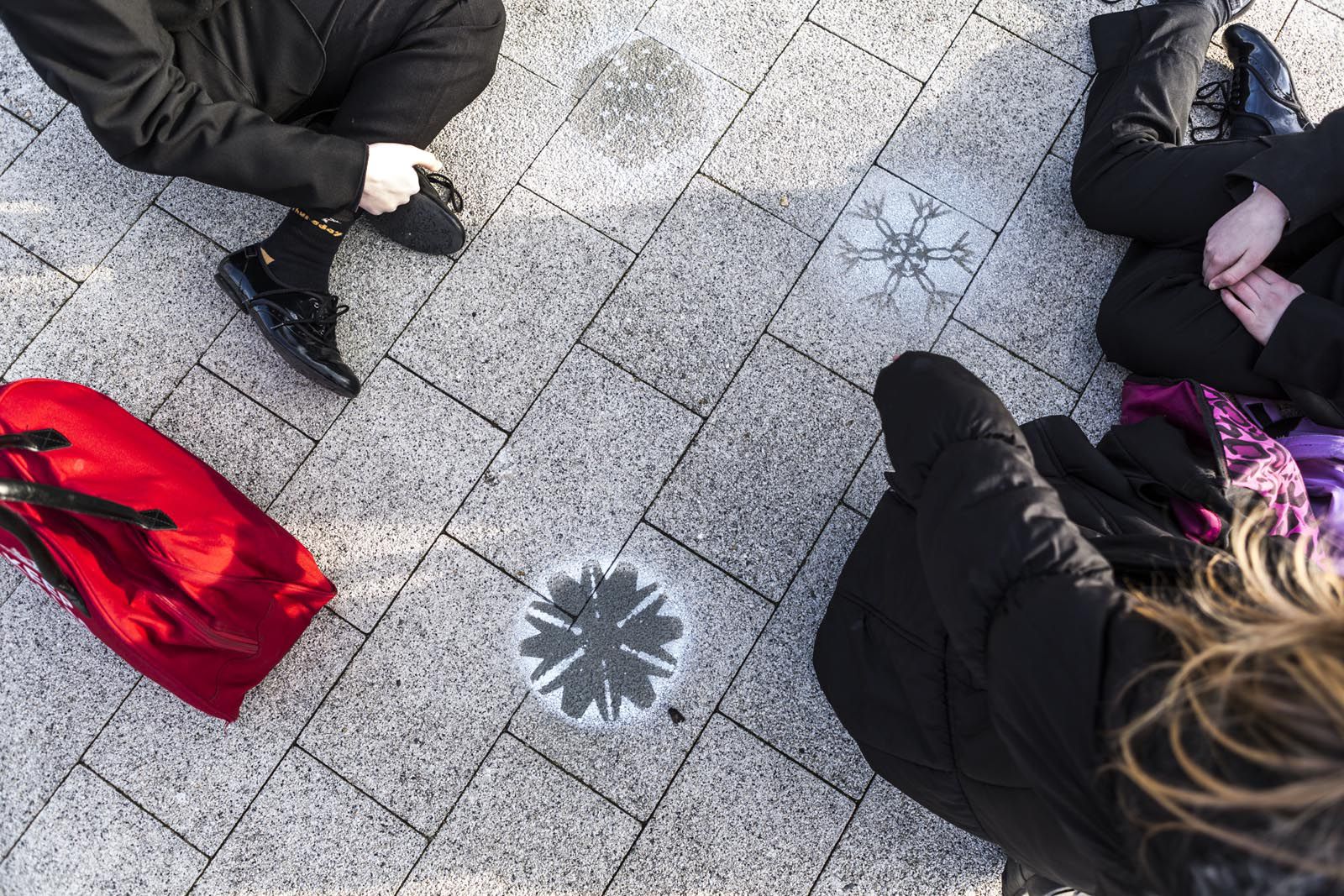 Anna Barriball was appointed in 2010 and developed the work over that last 2 years, working closely with the school development team, comprising the school head, staff, pupils, and other stakeholders. The final work, 'Snowflakes', is a transient work across the schools public realm featuring an entire school year group, with 720 unique hand made paper snowflakes, transferred using spraypaint to the physical space of the school yard and public realm.