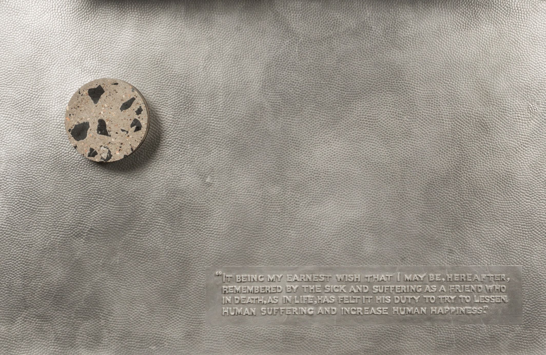Claydon’s work - ‘Charter’ is based upon a Memorial Plaque situated in the hospital’s entrance space. Like many people, when Steven visited the Hospital, he was struck by the memorial which marks the exact day the hospital first opened. It also features the words of Handel Cossham and his wish to create the hospital, largely to treat miners from his own coal pits that had fallen sick with mining related illnesses.