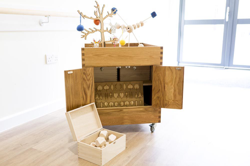 Eamon O’Kane’s interactive commission, 'Creative Toolboxes' was developed for Brunelcare’s new Saffron Gardens care home and completed in January 2013. O’Kane created four purpose-built mobile wooden cabinets, one for each residential unit. In addition to a series of abstract and figurative objects, the cabinets also contain audio playing equipment.