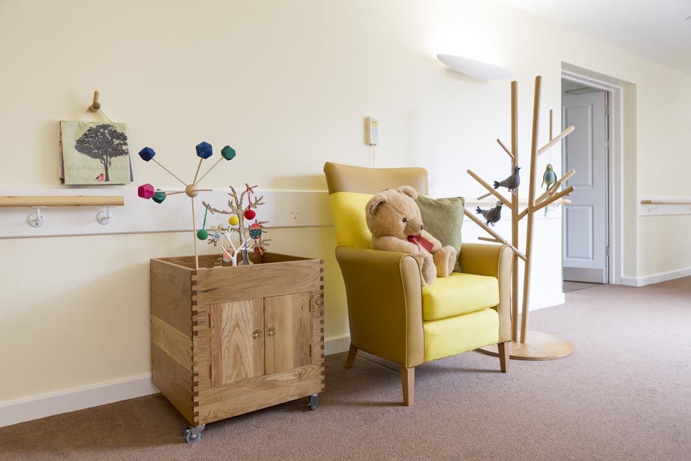 These artworks are intended to enable residents, visitors and staff to sit and work with these thoughtfully-constructed colourful objects, whose creation references ideas of nature, design and play – whilst listening to the additional stimulus of sound, which can be tailored to the individual requirements of a resident, group of residents or specific occasion.