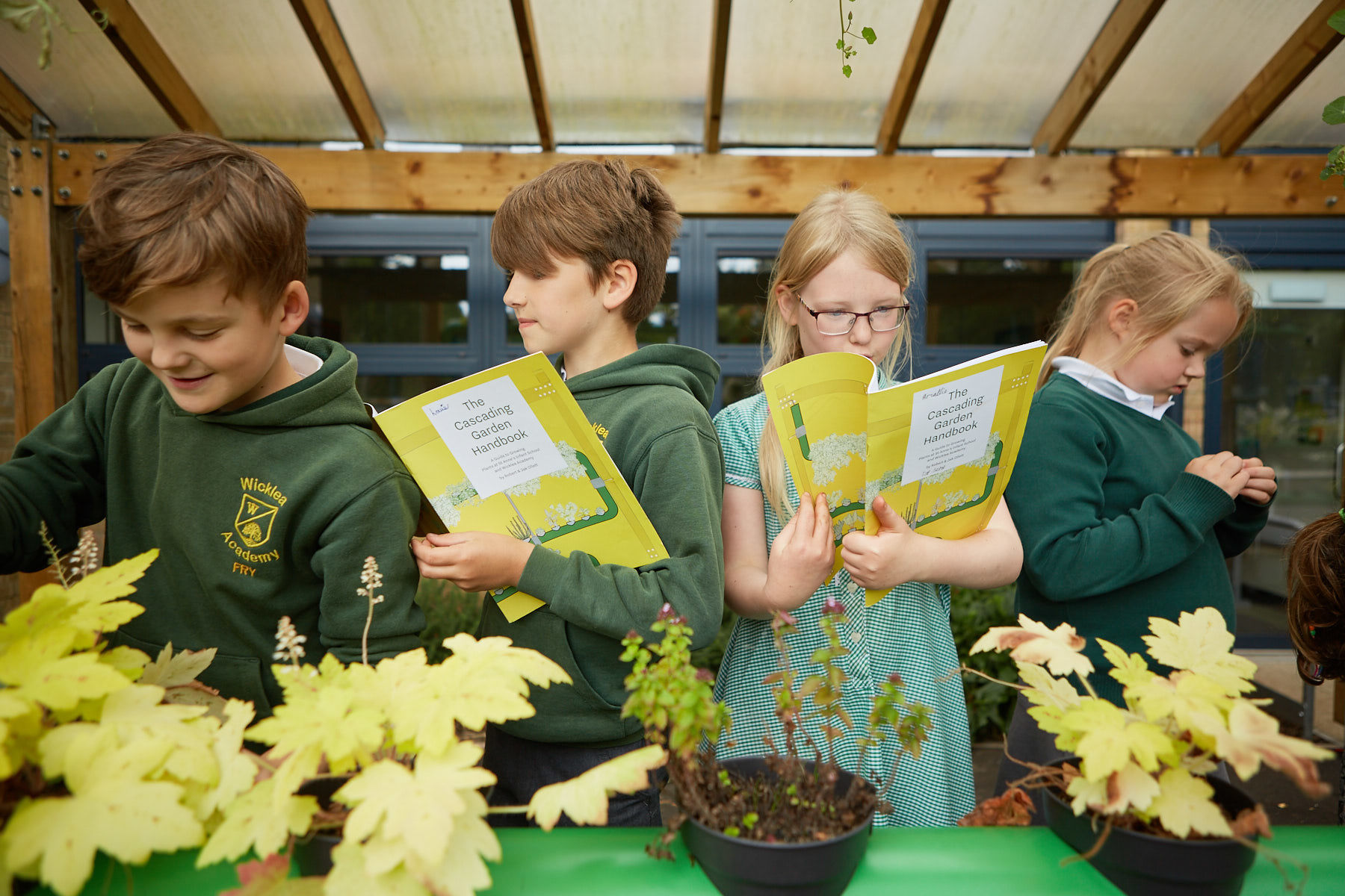 In developing their work Eudaimon worked closely with St Anne’s school to look at ways the project could cross over with the curriculum, especially Forest School, and integrating a series of gardening workshops for pupils. This was further developed through the creation of a publication ‘The Cascading Garden Handbook: A Guide to Growing Plants at St Anne’s Infant School and Wicklea Academy’ which was published as part of the project to instruct pupils and teachers on the use of the planting system and the different types of species of plants that would be best suited, with a focus on herbs and aromatics, and fruit plants. The book also includes a section at the rear for children to make drawings and notes around the project.
