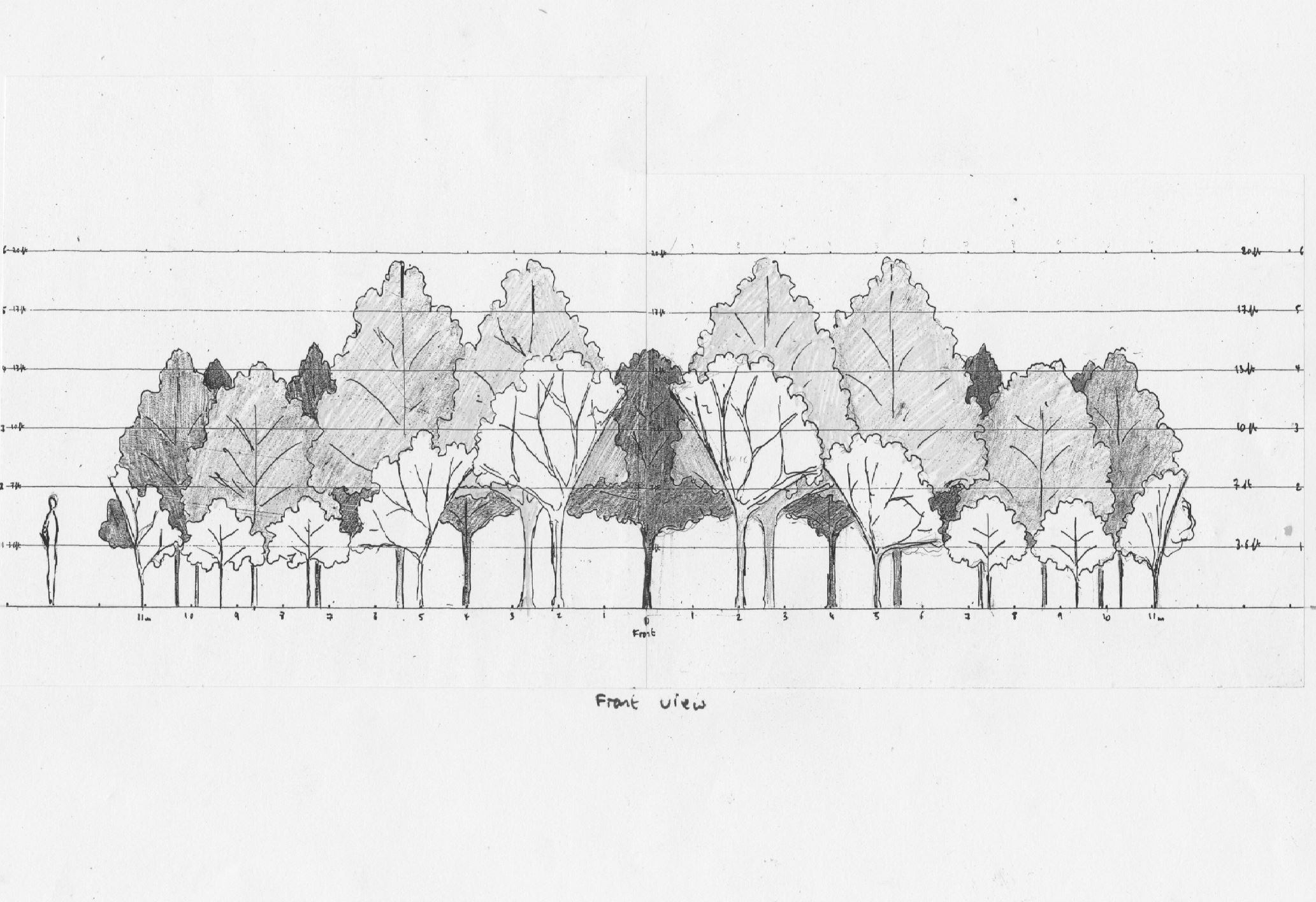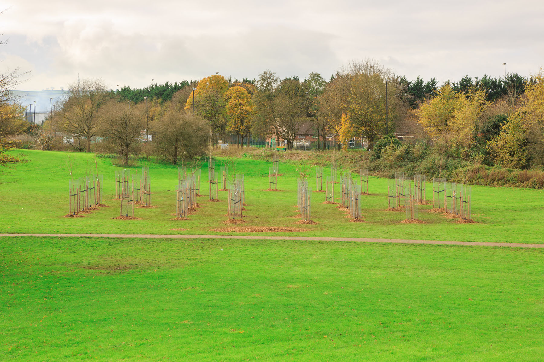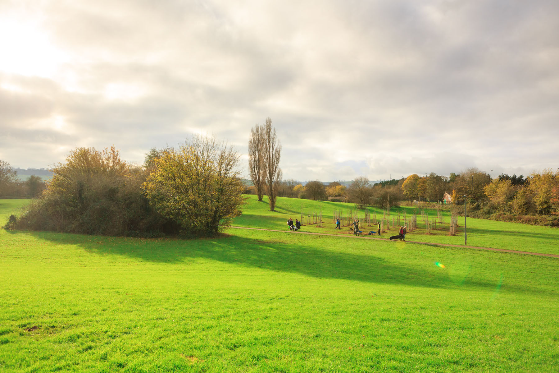 David Thorpe’s His community orchard was planted on Whitchurch Village Green, Hengrove in November 2015. It is made up of fruit and nut trees and takes the shape of a cathedral, complete with nave, transept and apse. Planted by local children and residents of Hengrove, the orchard is designed to be a communal meeting place and stems from Thorpe's interest in utopian English traditions, with particular reference to the work of William Morris.
