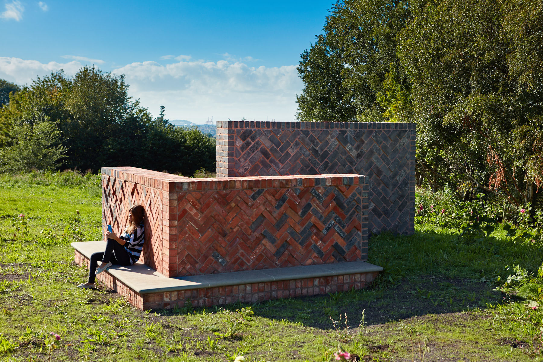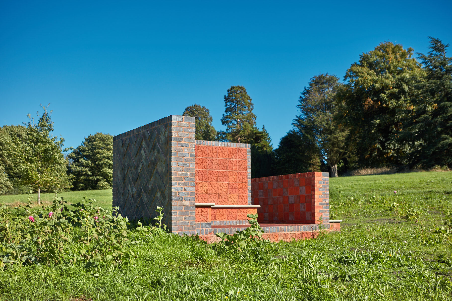 Located in a meadow between the Wills Hall and Hiatt Baker halls of residence, the new artwork is conceived as an ‘outdoor room’, somewhere between a ruin and an archaeological find. The highly textured sculpture is constructed from artist-designed wood-fired tiles, reclaimed red and blue bricks and pennant stone. The artwork provides a place for contemplation, a meeting space, a site for picnicking and a locale for stargazing. Surrounded by Elizabethan meadow planting designed by the artist and orientated to harness the warmth of the afternoon sun, the sculpture offers long views across Avonmouth and into Wales in one direction, and in the other, a view up to Wills Hall past its inspirational chimneys and beyond to the stars.