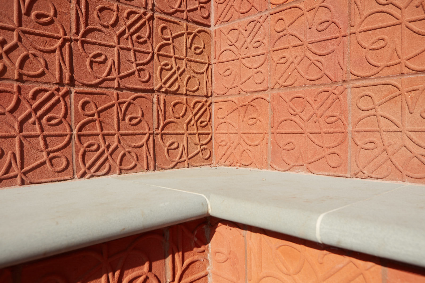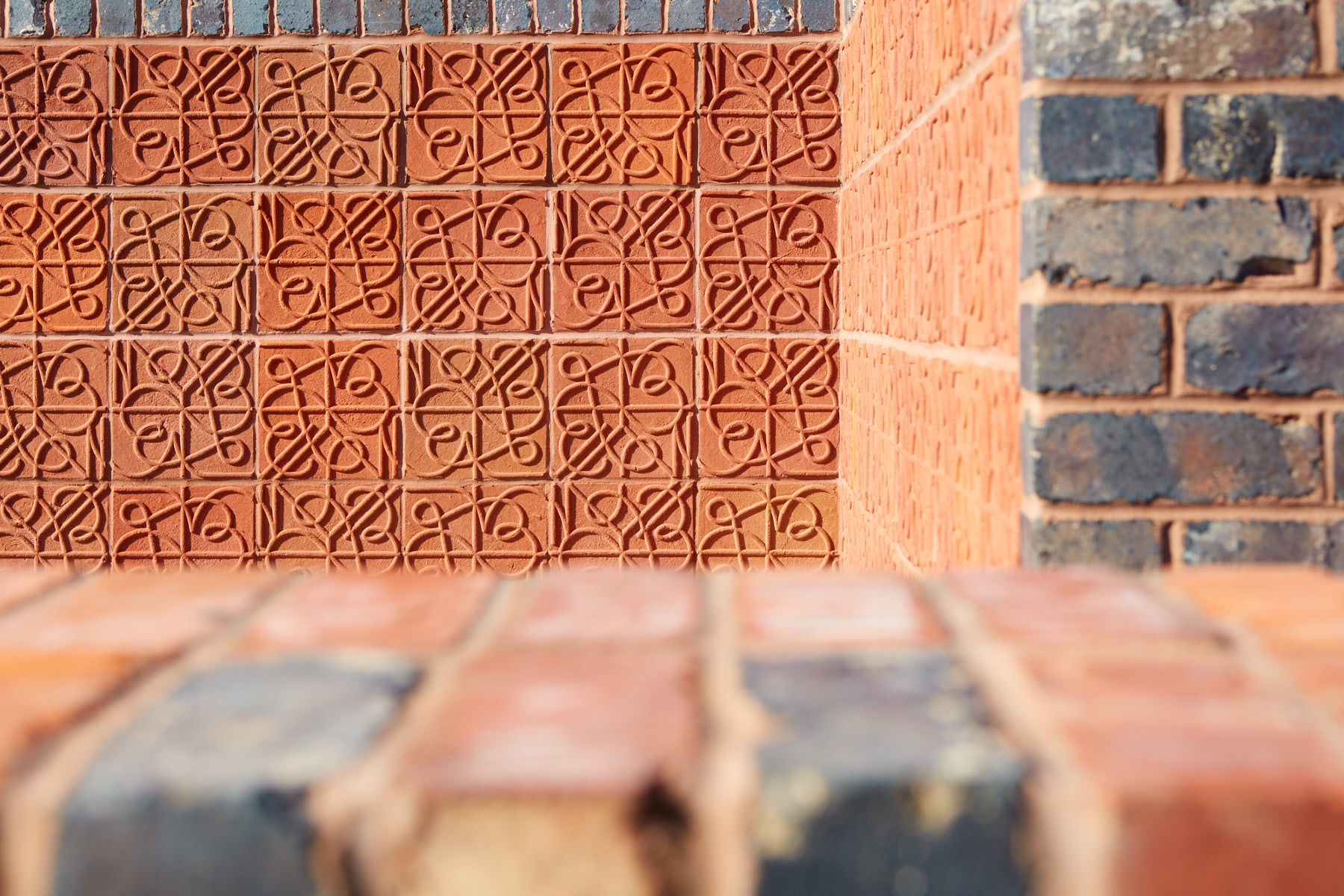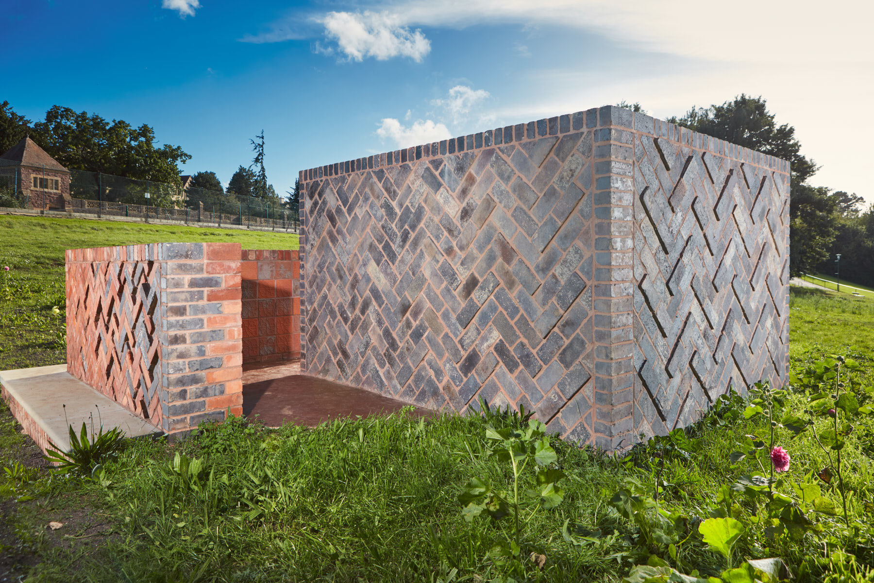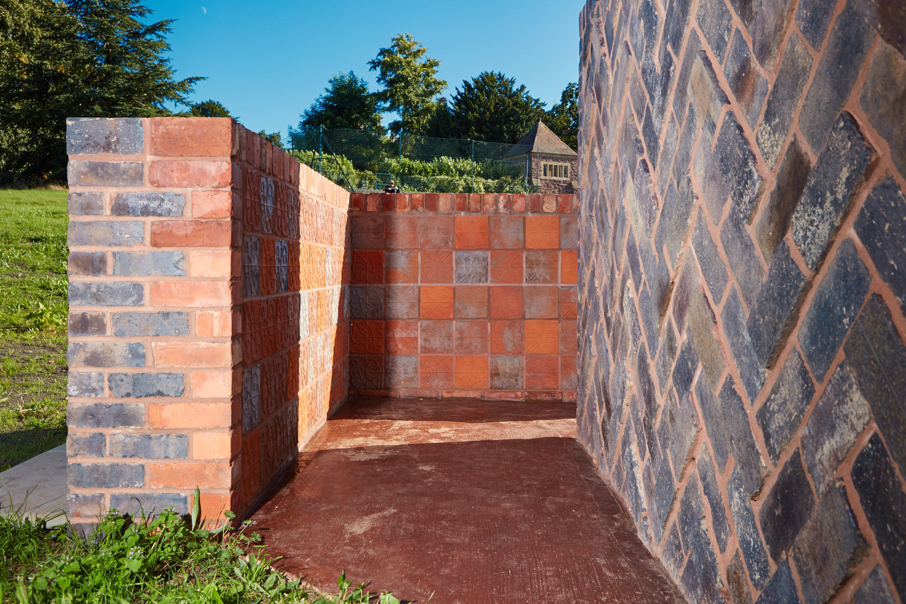 The artwork was constructed by Bristol-based building contractors Aztech Building Services, with groundworks by Earthworks. The bespoke wood-fired tiles were produced to the artist’s design by specialist brickmakers H G Matthews, and reclaimed bricks were sourced from Ronson Reclaim in Gloucestershire. The pennant sandstone was sourced from Royal Forest Pennant in Gloucestershire. The installation work was carried out by Aztech Construction and by the University Estates Office's landscape team.