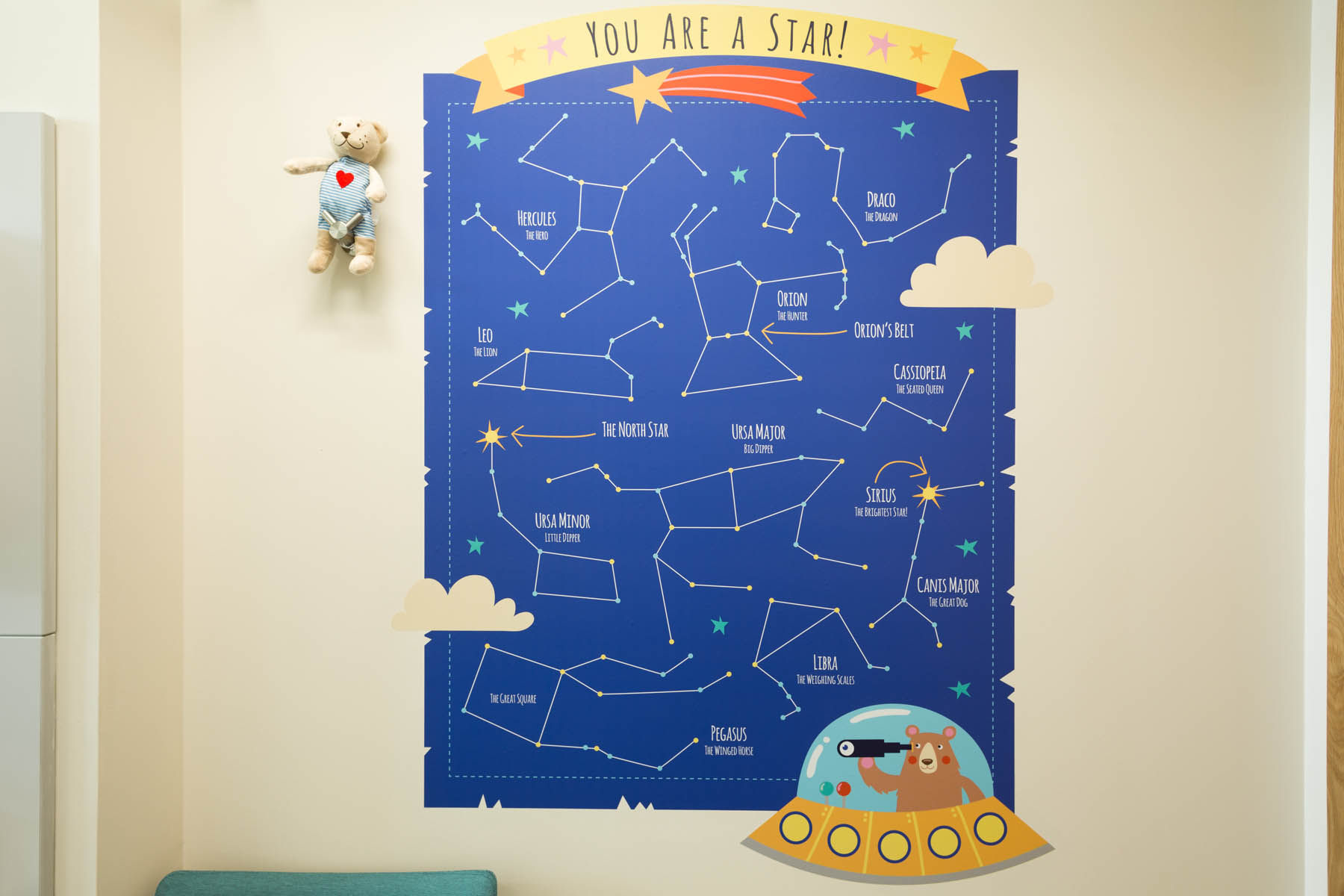 Emily’s brief was to create 2D wall and ceiling art which would help to: