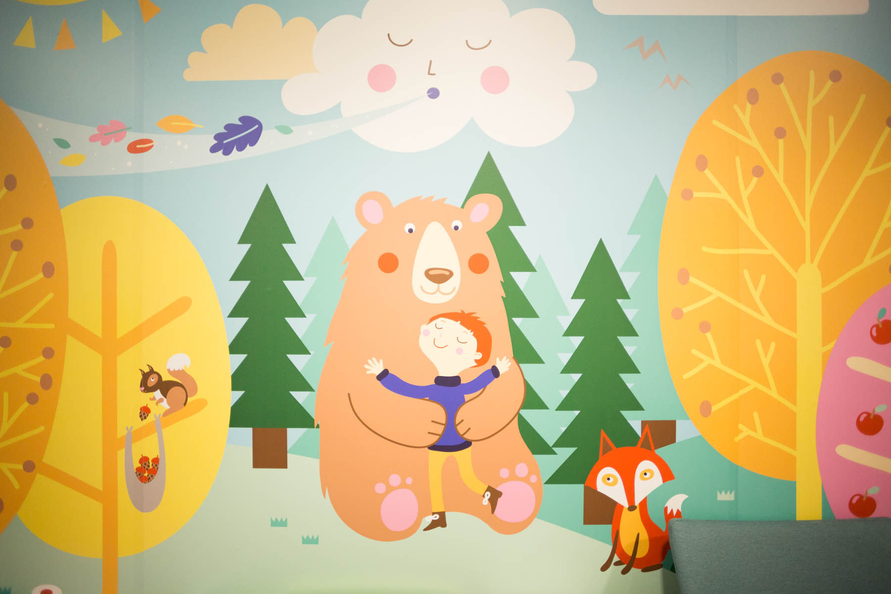 Bristol illustrator Emily Golden was commissioned to enhance the Paediatric Minor Injuries Unit within Southmead Hospital Bristol’s Emergency Department, in order to improve the patient experience for younger people in a stressful and busy part of the hospital.