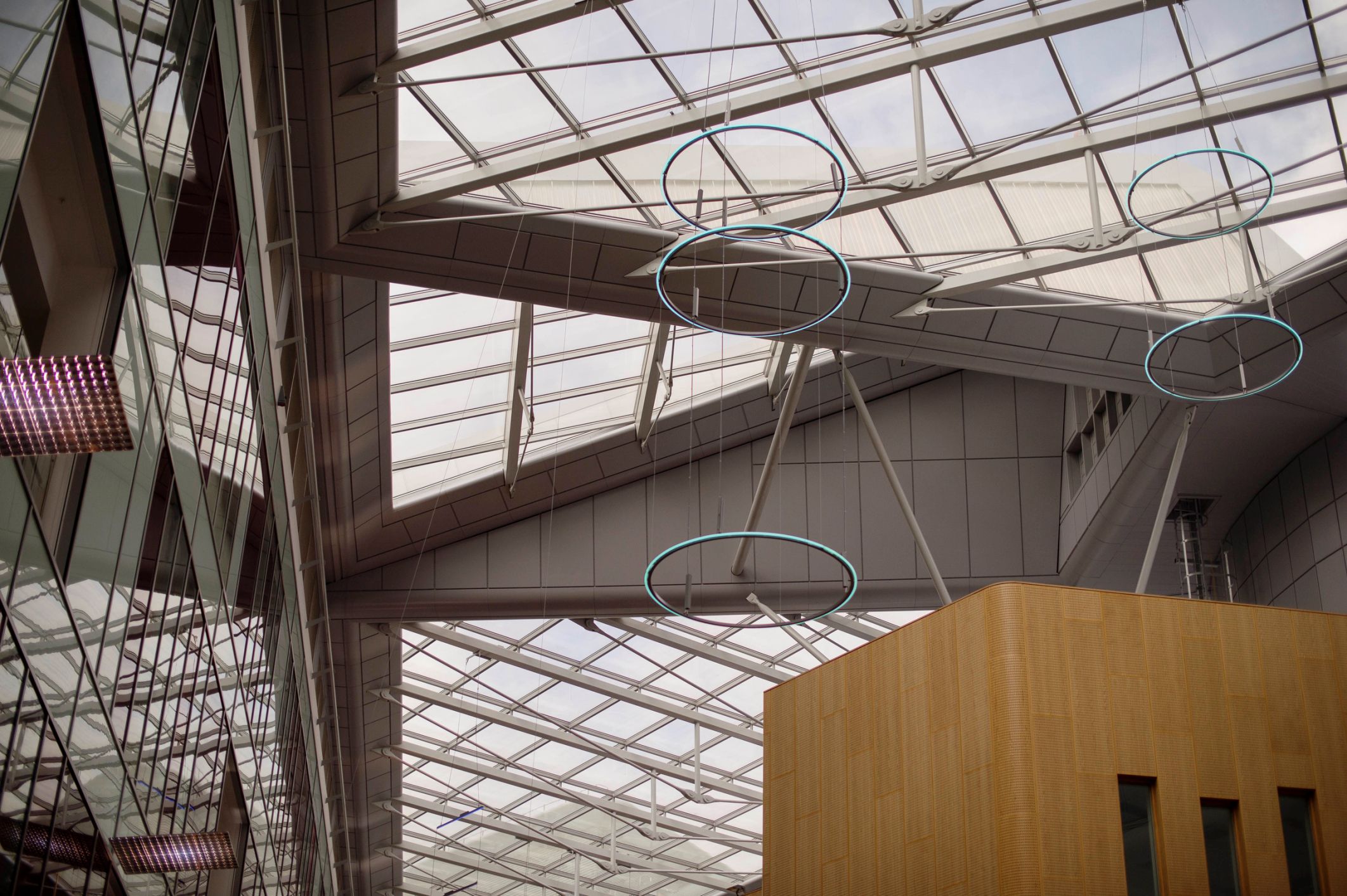 Rehberger’s interest in this commission stemmed from the nature of the space at the new Southmead site – three lofty atria (up to 30m high in some places) - and a desire to create work that was beautiful, challenging and inspiring for all those who use the hospital.
