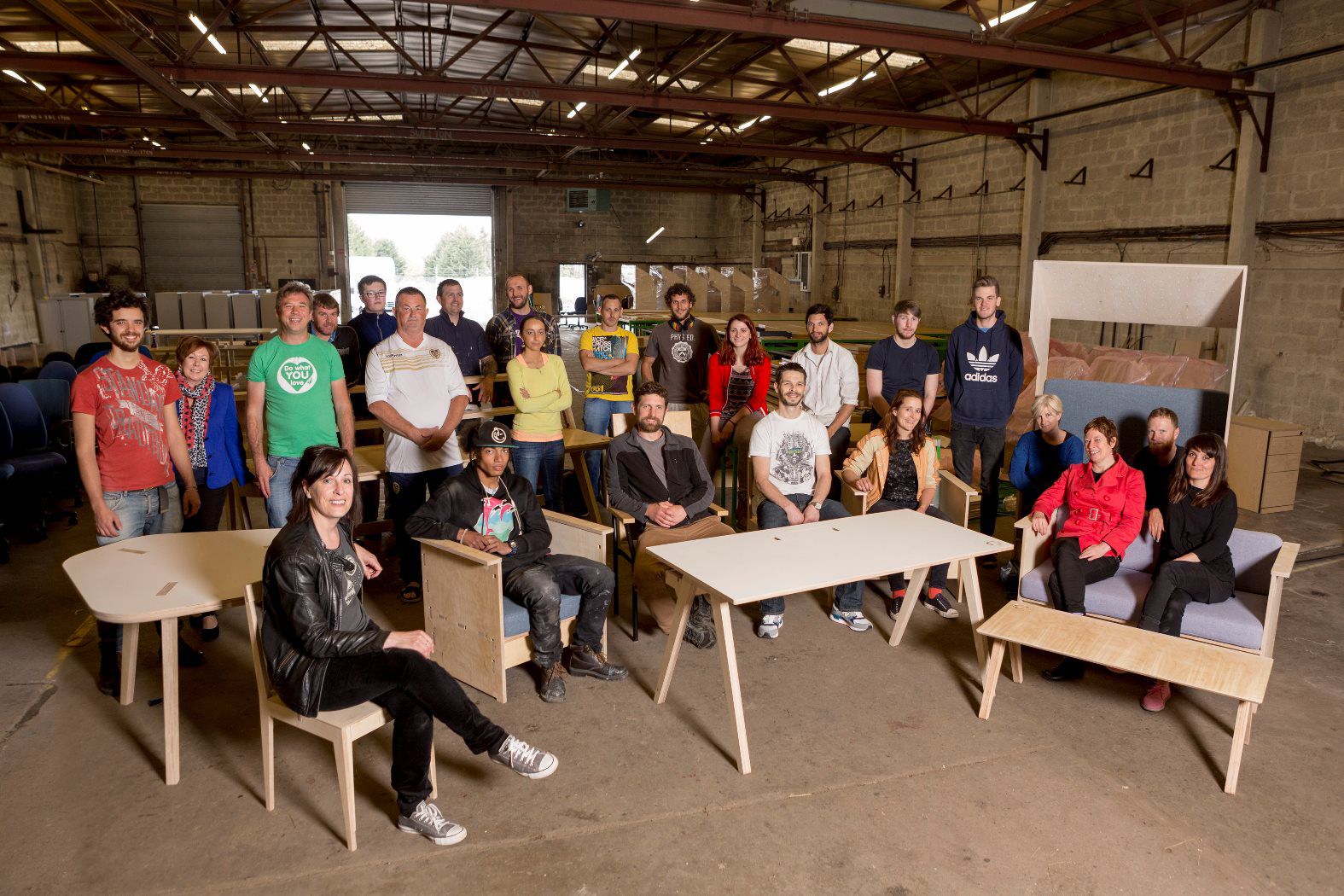 The activity took place at the Eagle House Pop Up Furniture Factory: a digital manufacturing space, run by KWMC with support from local charity re:work, and based in an empty former youth centre in Knowle West. The furniture was produced using digital manufacturing tools, including CNC routers and laser cutters, and recycled materials wherever possible.