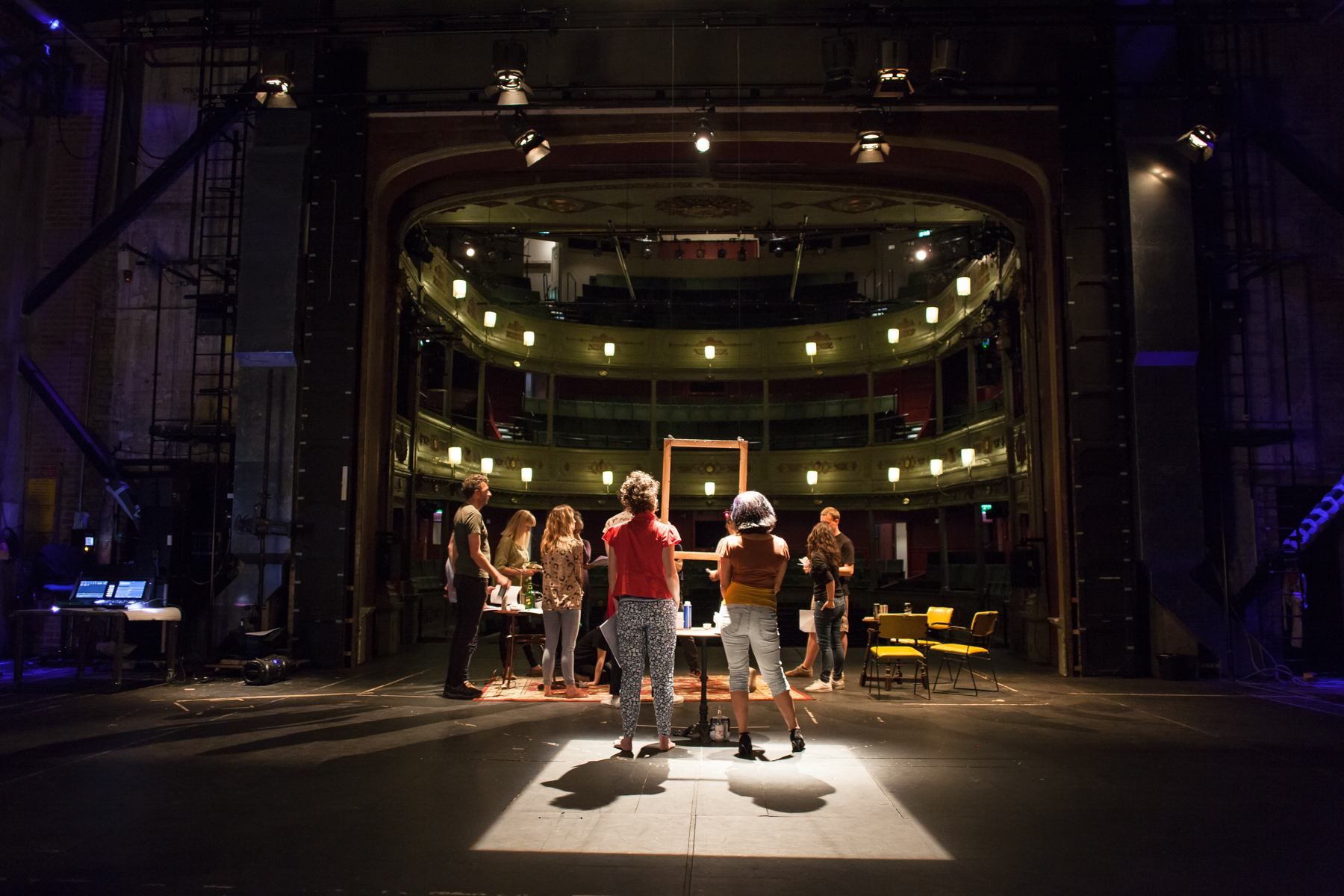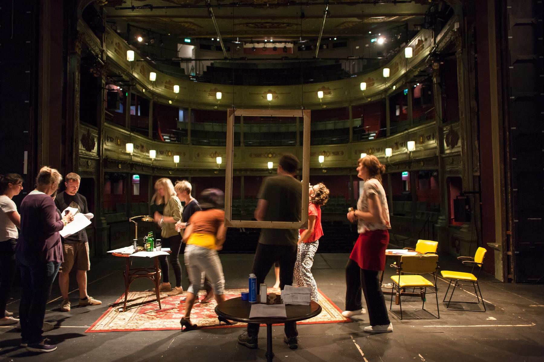 For this work members of the public were invited to join a full tech rehearsal on the theatre stage supported by a professional crew. Everyone present was simultaneously protagonist within and audience to the work, which unfolded through the decisions of the group. Commencing with script and set, all elements of the work were offered up to the public for alteration and direction with the final experience created being entirely specific to those that take part.