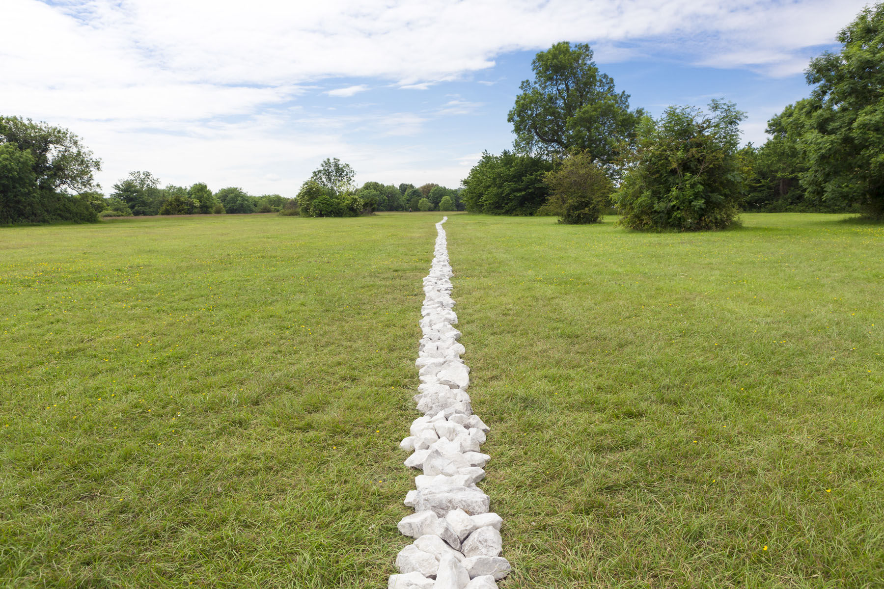 The new work, Boyhood Line, 2015, that Long will make with white limestone centres on a footpath close to Ladies Mile, a ‘desire line’ which has been made over many months by the footprints of people walking across the Downs, instinctively following the same path and establishing an unplanned path through the grass.