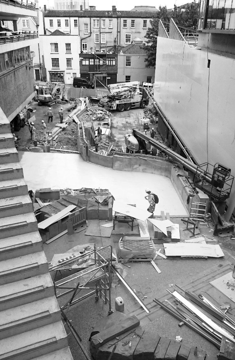 The challenge was to deliver a bespoke scheme within a design build contract on a site that was highly constrained by the topography without it becoming an essay in accommodating back of house functions, value engineering or balustrades to protect fall heights. Additional constraints included the need for a crane to access two substations and building regulations to provide large enough areas around fire exits and a compliant step free gradient.