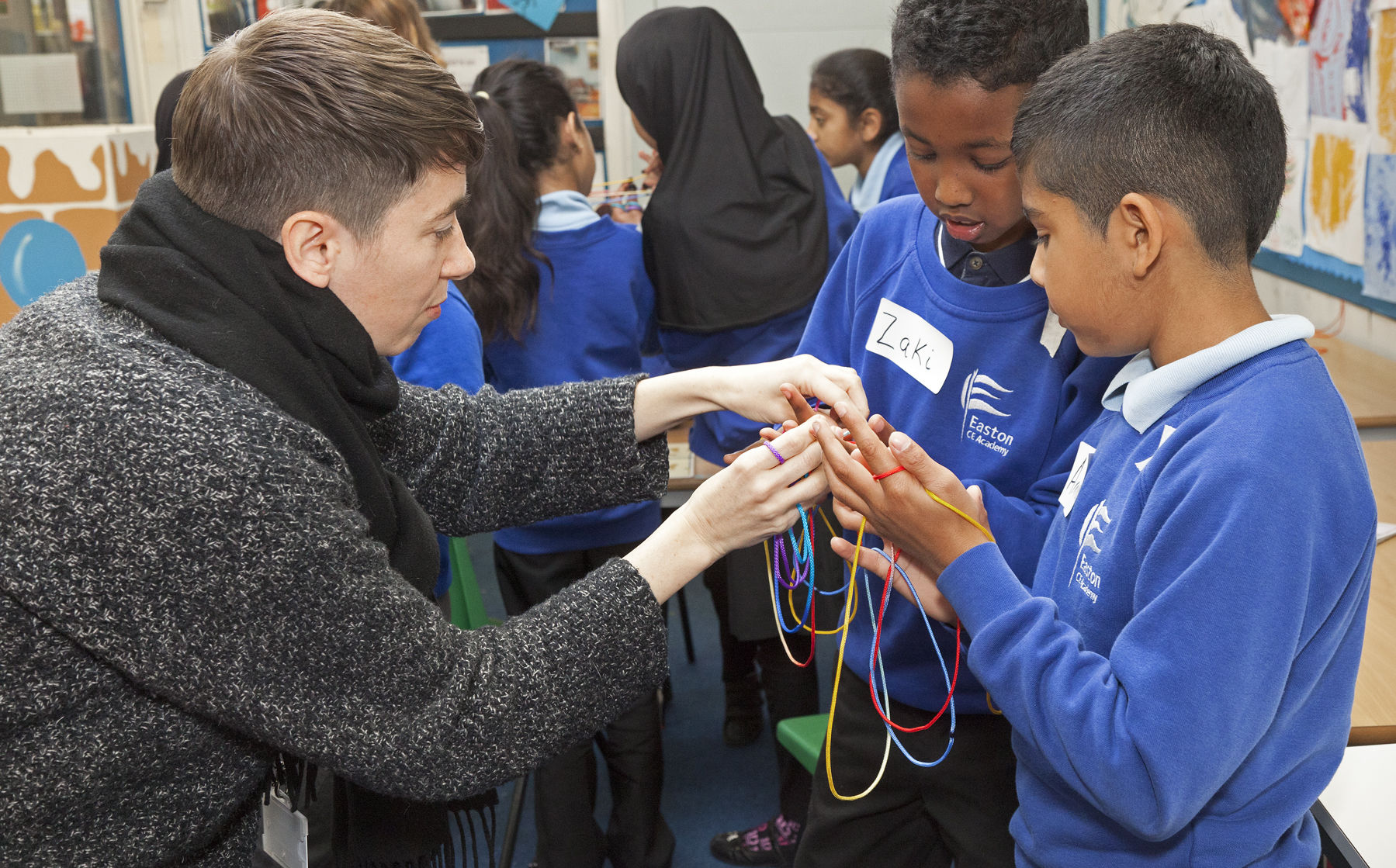 The final art work, resulting from a series of workshops with the school pupils, will take the form of a series of new string figures, a large-scale fabric banner and a small book, both of which will give instruction on how to play the ‘Easton string games’. Both the banner and the book are teaching tools, of sorts, however in a reversal of hierarchies the experts on the string games teachers will be the children who have participated in the workshops. They will act as ambassadors for the artwork both in the school & beyond, as the intention is for the work to travel beyond the school to cultural and community events.